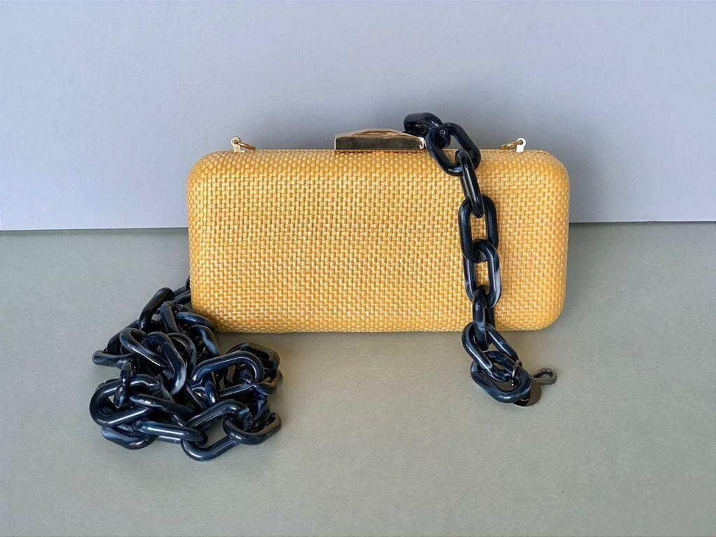 Adicione elegância e personalidade à sua bolsa clutch com esta alça longa em acrílico azul marinho degradê. Composta por elos encadeados que criam um visual moderno e sofisticado, é a escolha ideal para quem deseja variar o uso da clutch com estilo e praticidade.