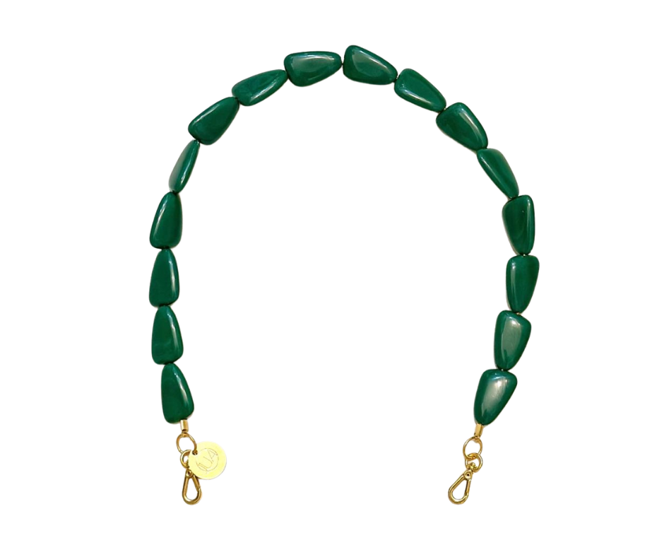 Alça Curta em Pedras Acrílicas Verdes com Formato Triangular e Fecho Dourado | JUÁ Concept