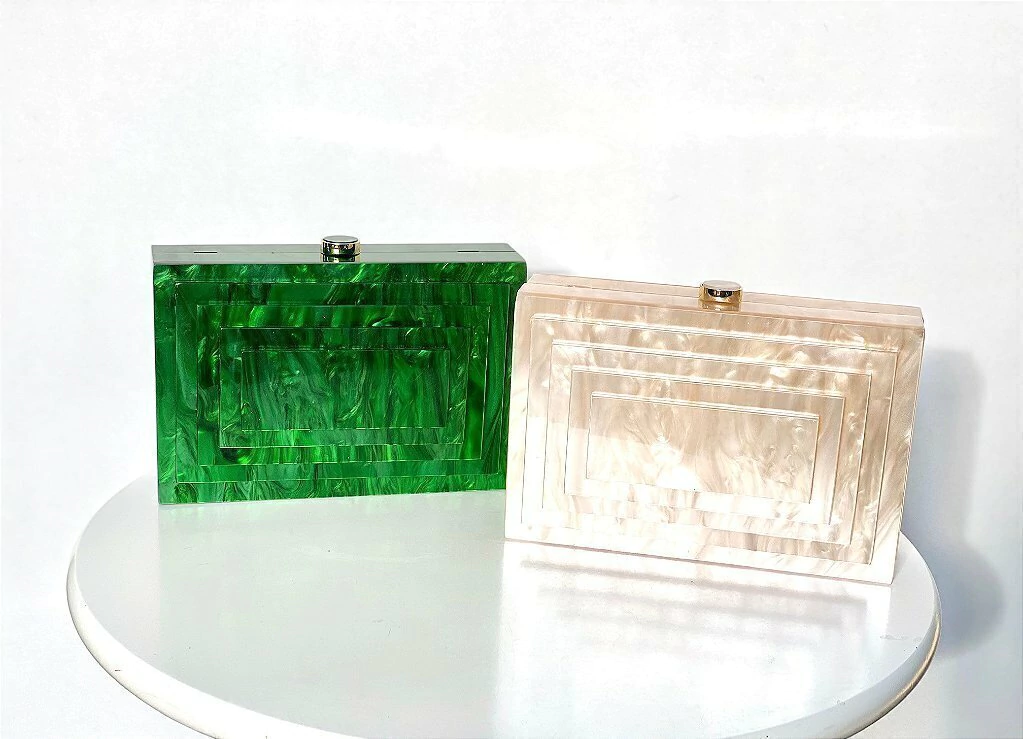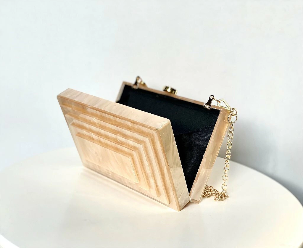 Bolsa Clutch em Acrílico em Design Diferenciado cor Champagne Perolada | JUÁ CONCEPT