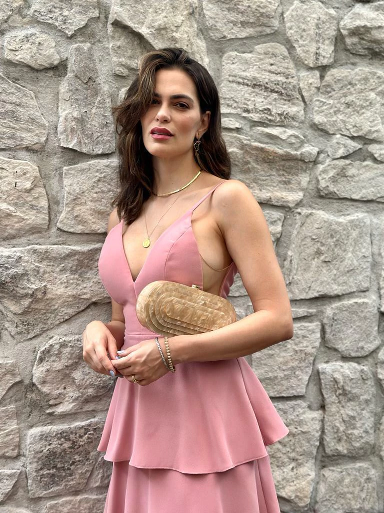 Sua estrutura rígida em acrílico de alta qualidade garante durabilidade e charme, enquanto o fecho de encaixe oferece praticidade e segurança. Acompanha alça longa removível em metal dourado, permitindo usá-la tanto como clutch de mão quanto como bolsa de ombro, conforme a ocasião.