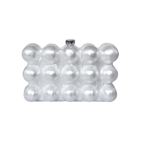 Com um tamanho perfeito para carregar itens essenciais, a Bolsa Clutch Acrílica Design Gaia Bubble Perolada é ideal para acomodar um celular de tamanho grande, oferecendo praticidade e estilo na medida certa.