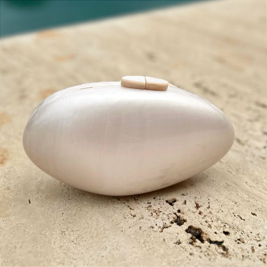 Bolsa Clutch em Acrílico Perolado Champagne – Concha Bruta | JUÁ CONCEPT