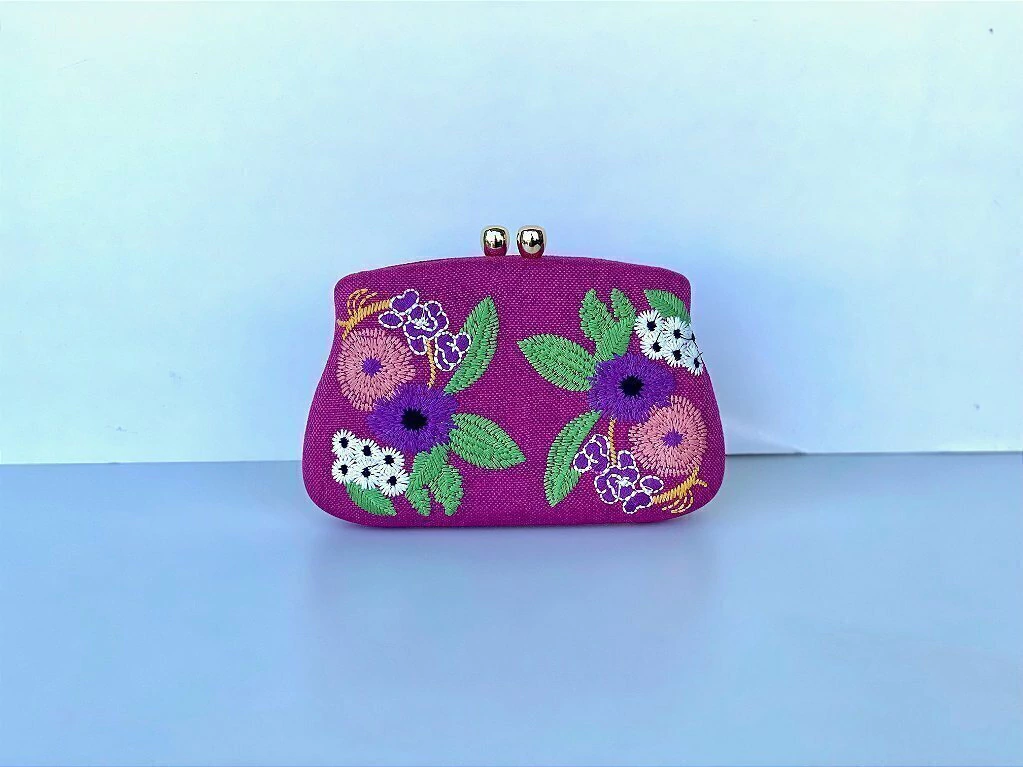 Bolsa Clutch em Ráfia Bordada de Flores na cor Rosa | JUÁ CONCEPT