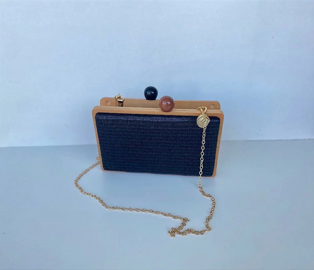 Bolsa Clutch Madeira e Ráfia Preta com Alça Acrílica – JUÁ CONCEPT