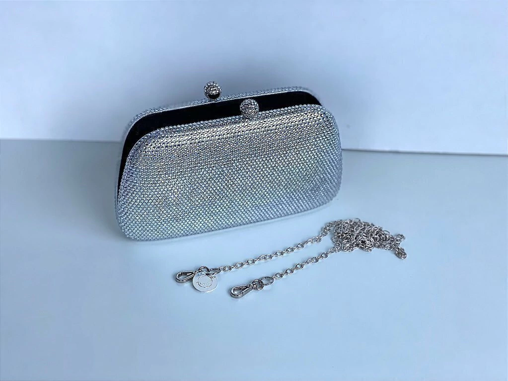 Bolsa Clutch Prata em Formato Trapézio com Aplicação de Mini Cristais | JUÁ Concept