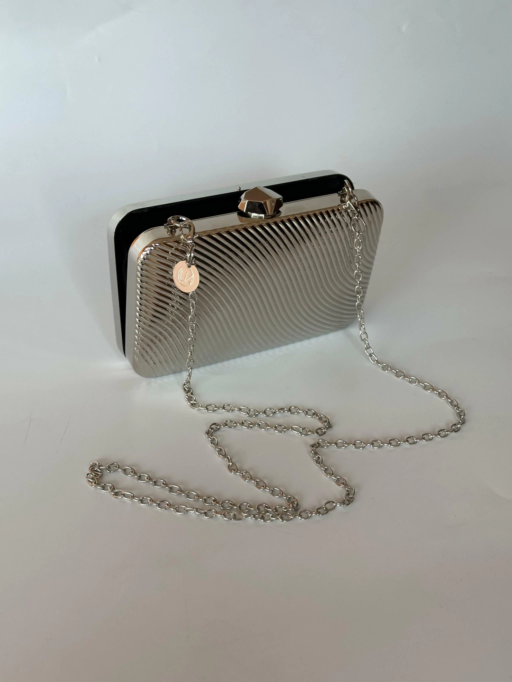 Bolsa Clutch Metal Prateado Retangular com Alça Longa – JUÁ CONCEPT