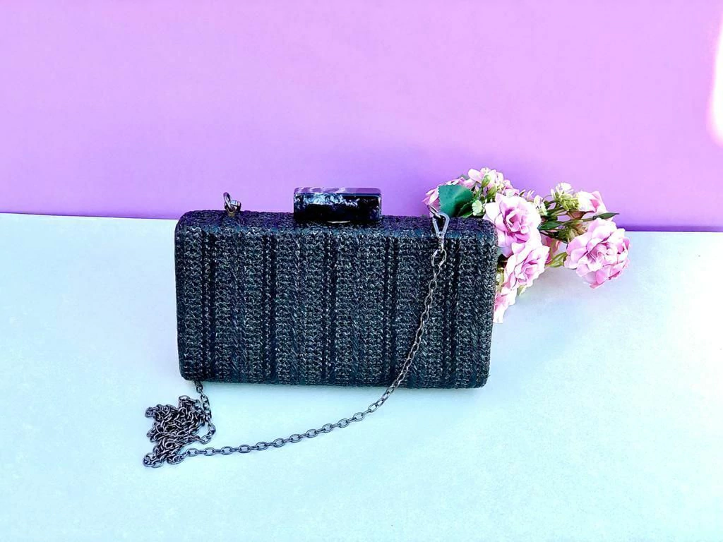Bolsa Clutch Retangular em Ráffia Preta com Fecho de Resina – JUÁ CONCEPT