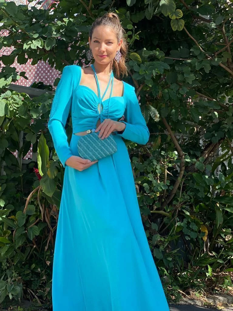 Bolsa Clutch Arredondada em Trama de Ráfia Azul | JUÁ Concept