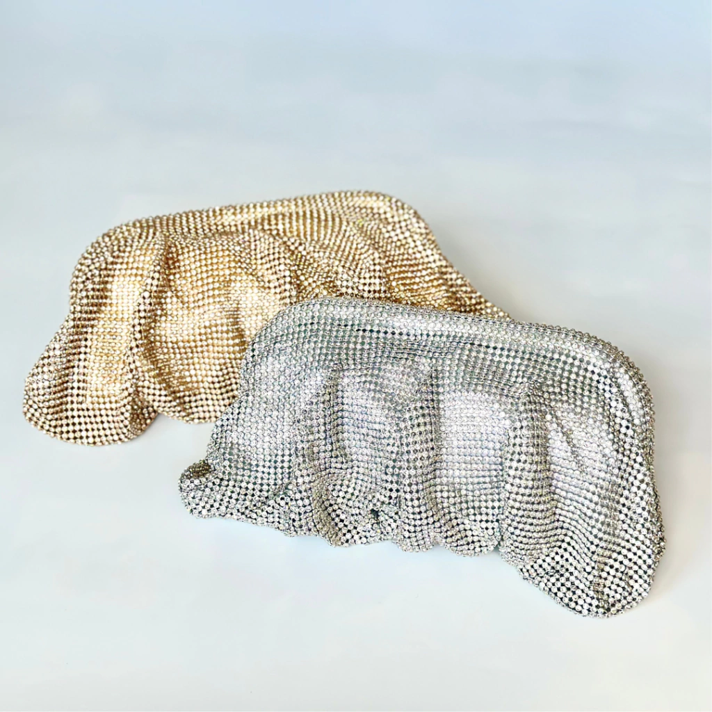 Eleve seu look com a bolsa clutch prateada com aplicação de mini cristais, um acessório de luxo que combina brilho, elegância e versatilidade. Seu material maleável e forrado internamente garante conforto no uso, enquanto os cristais delicadamente aplicados conferem um visual sofisticado e único.