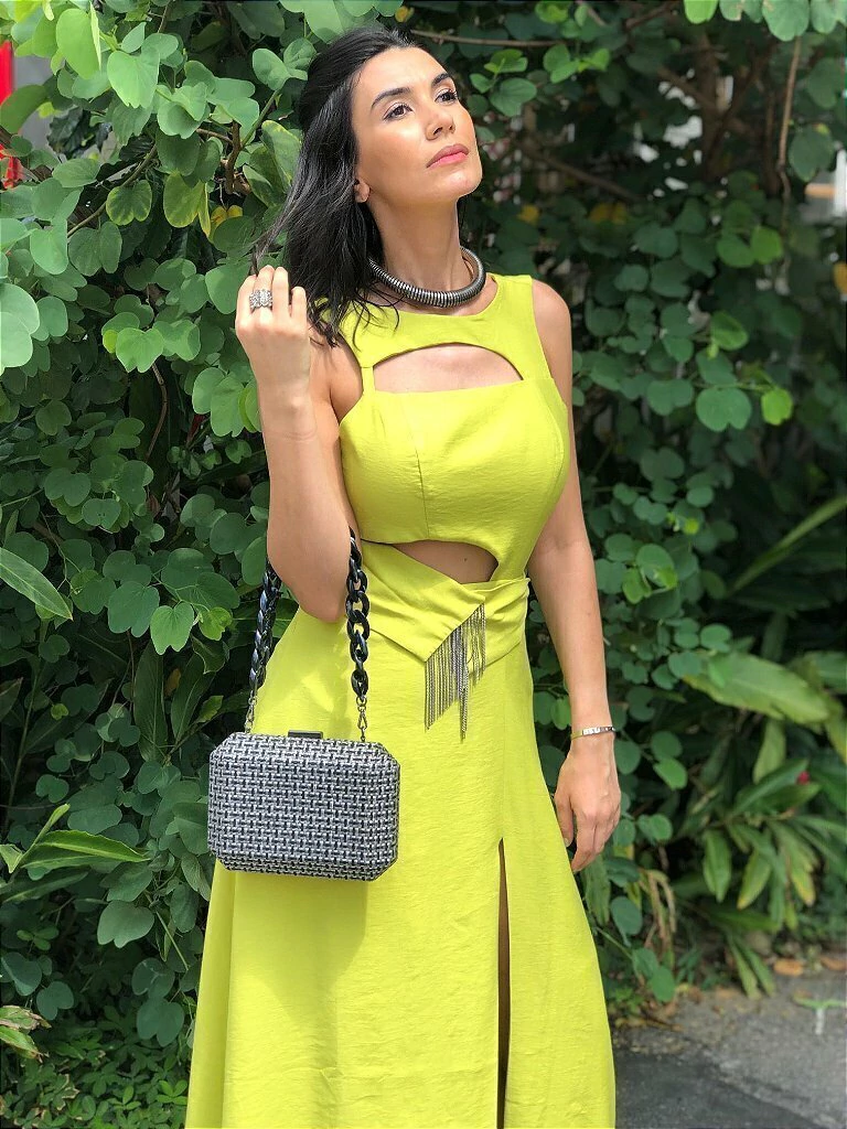 Acompanha duas alças: uma curta de acrílico preta para uso na mão e outra longa em metal grafite, que permite o uso transversal ou no ombro com conforto e versatilidade.