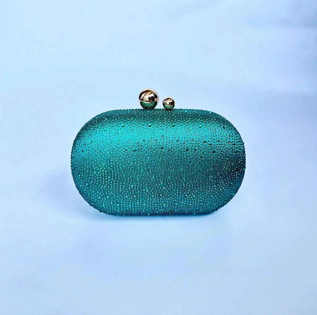 Bolsa Clutch Verde com Aplicação de Cristais Oval – Brilho e Sofisticação para Ocasiões Especiais | JUÁ Concept